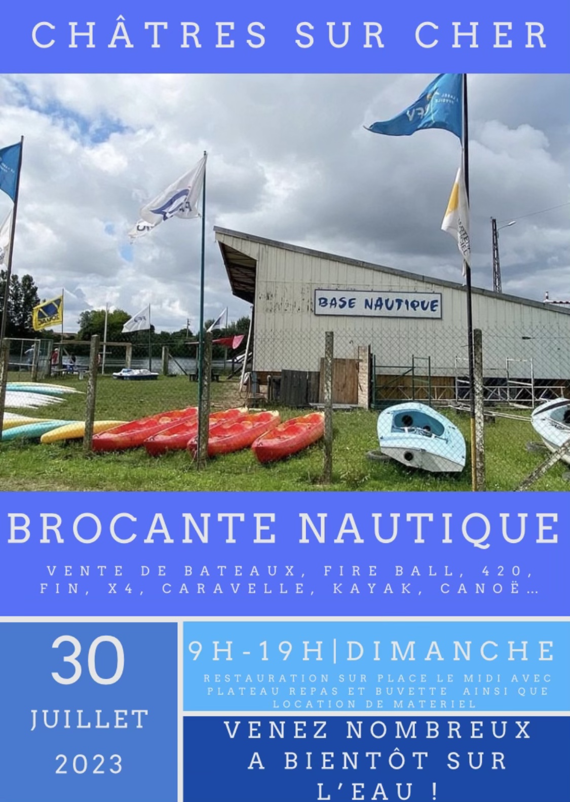 Voici toutes les informations sur le Service de location d'équipements de sports nautiques Base nautique de Châtres-sur-Cher qui ce trouve au Rue des Ponts, 41320 Châtres-sur-Cher (41). Sur cette fiche vous trouverez les photos, l'adresse, les horaires d'ouverture, le numero de téléphone et les avis clients.Vous pouvez églement rédiger un avis si vous le souhaitez en bas de page.