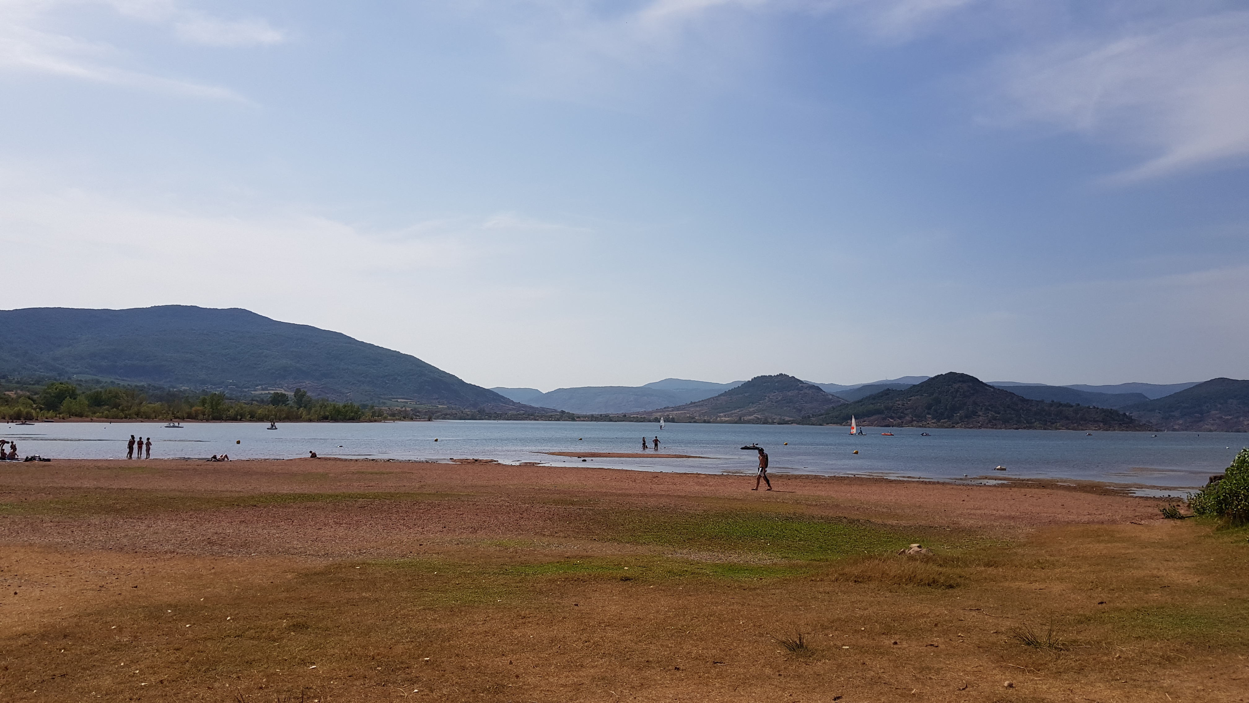 Un petit coin au bord du lac assez sympa. Parking assez grand et juste derrière. Eau claire, faiblement profonde. Des petites vagues quand il y a du vent. Et du courant. Espace plage en gravillons. Peu d'herbe, sèche de toute façon. Pas très grand. Possibilité de louer des engins nautiques. Non testé. Moins agréable quand il y a du vent, et souvent très très venté. Mais les planches à voile et Kite Surfs apprécient. Et nous aussi à les voir évoluer gracieusement en face de nous.